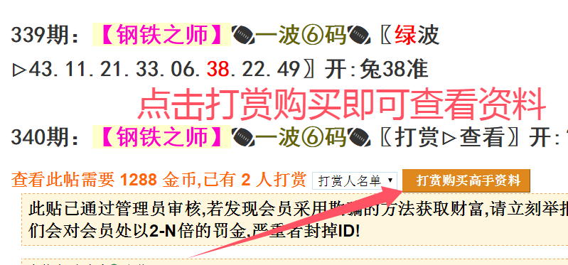 (注意:所有高手出售的资料都是单期售卖,需要购买才能查看)